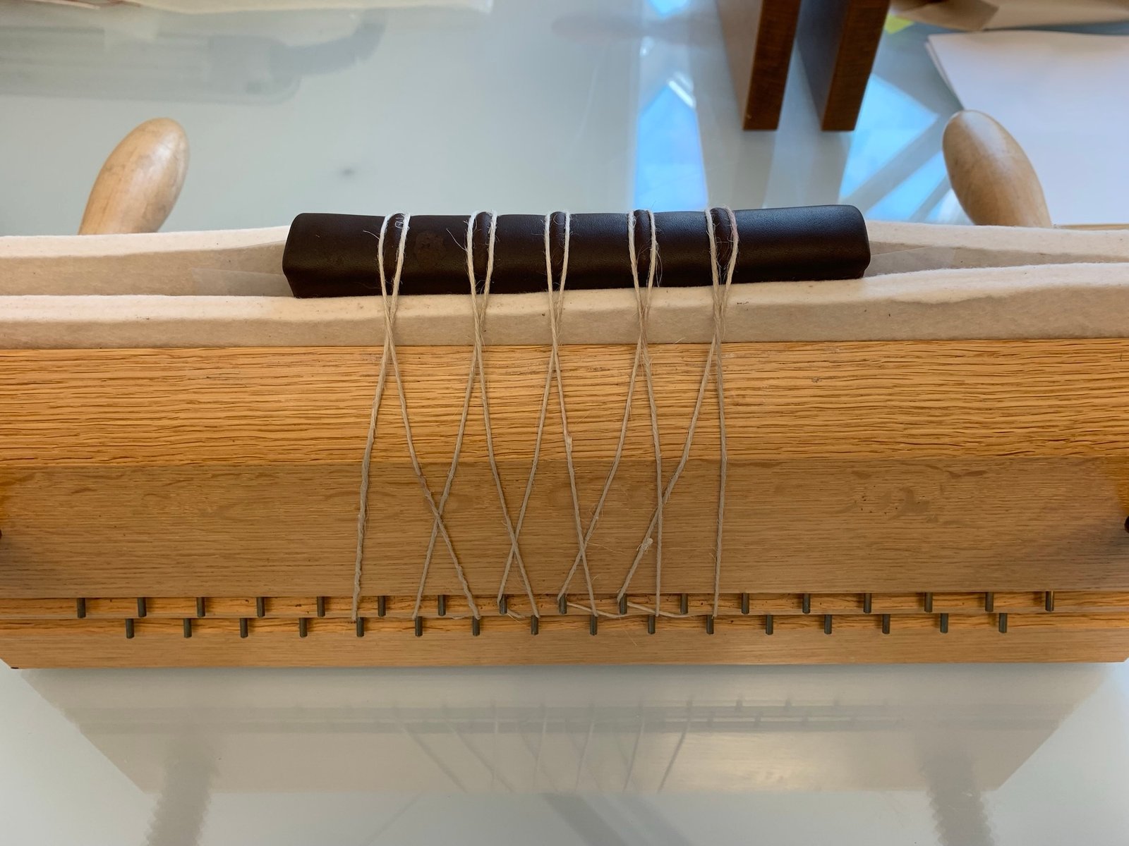 This volume was purchased by Ann for me to practice full leather rebinding, including washing the entire textblock, despite the book’s good condition. The book was completely disbound with collation. The textblock was washed in two calcium-enriched deionized water baths for 15 minutes each and then sized in a methylcellulose-dissolved water bath. After drying and guarding the individual leaves, the textblock was sewn on five cords following the original sewing pattern. The new binder’s boards were laced on with the cord slips. The spine was first lined with Uso Mino Thin paper, followed by sanded calf leather to create a smooth spine. Finally, the book was fully covered with hand-pared calf leather.